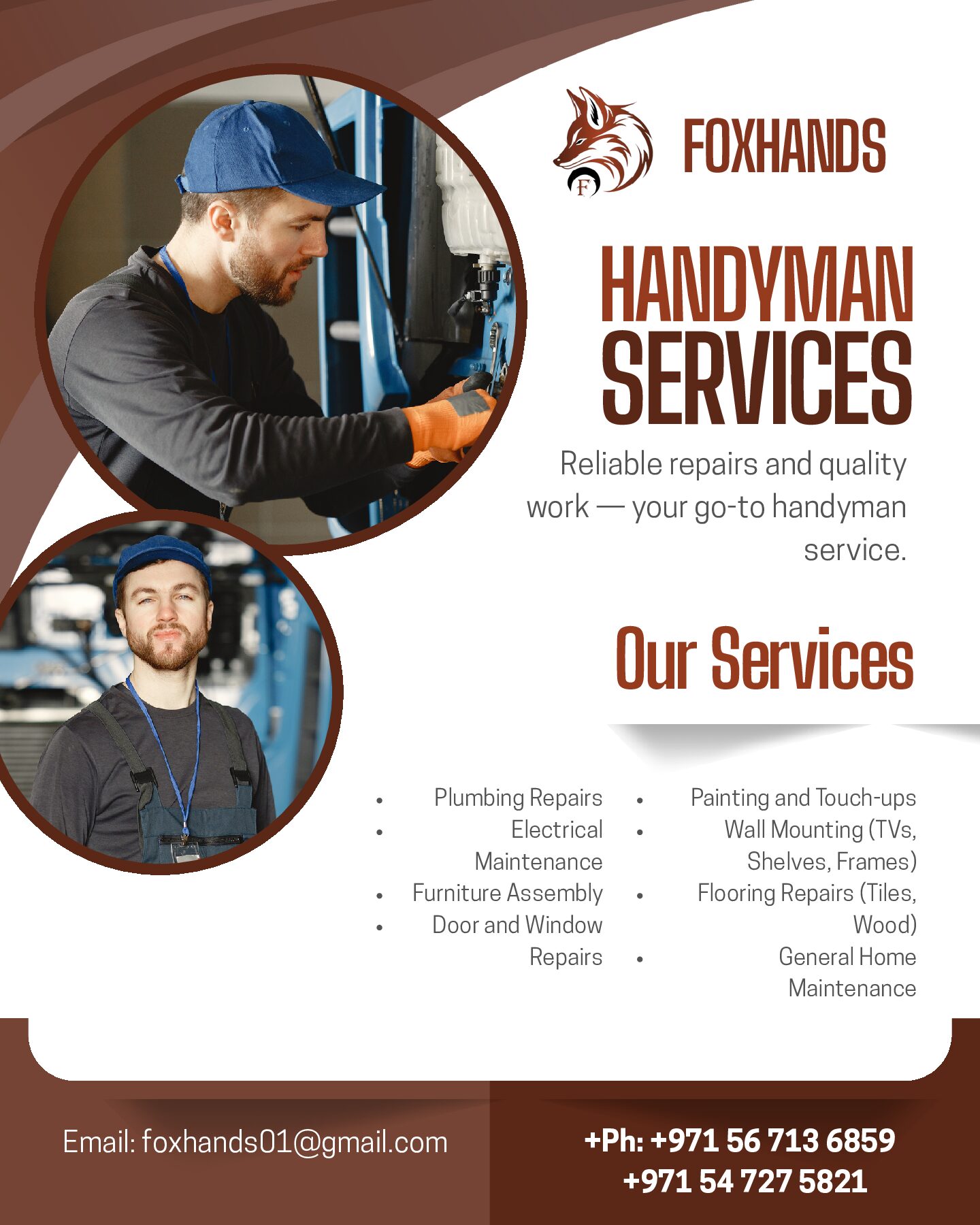 Carpentry & wood Flooring works Fixing wood floors is an essential part of FOX HANDS TECHNICAL SERVICES. A wood floor can look like a million bucks and completely change the visual of your space...